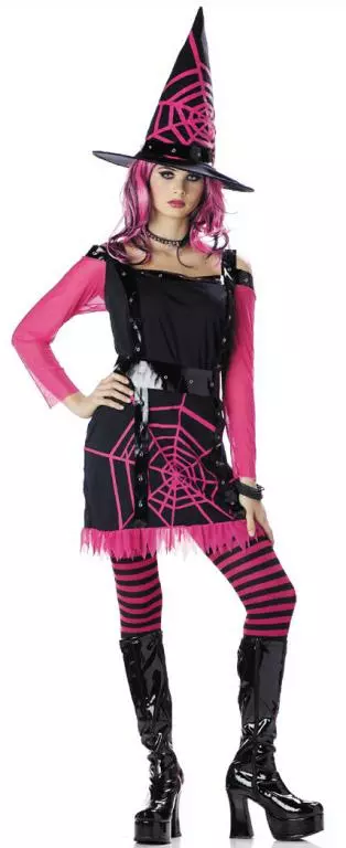 Sure To Be A Hit Costume Includes: Dress with spiderweb imprint front with matching witch hat. Available size: