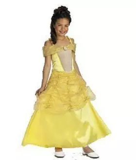 A classic Disney Princess from Beauty and the Beast!Disney©’s Beauty & the beast princess Deluxe quality costume includes:golden satin dress with inset bodice, sparkle tulling overskirt and shoulder accents.Available sizes: