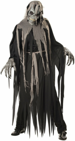 Get ready for the haunt of a lifetime with The Crypt Crawler Costume which includes: A shredded looking robe, hood with shredded gauze, character hands and an intricately sculpted ani-motion mask that moves with the movement of your own mouth.