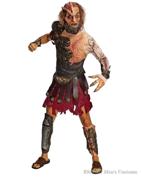 For this Halloween costume why not choose a really horrible evil character, someone who will make people recoil when they see it, someone who is truly a bad guy through and through. Calibos is that bad guy, once human, he was turned into a monster after being struck by lightning, the work of Zeus because Calibos dared to endanger the son of Zeus, Perseus, by putting him in a coffin and left him to drift, now a Minion of Hades and after obtaining super powers he seeks revenge whilst spreading his evil and destruction everywhere. The Men’s Deluxe Clash of the Titans Calibos Costume therefore is perfect for the man who wants to be seen as evil and full of revenge. The Calibos Costume consists of moulded chest armour with a scarred chest in the form of an attached sleeve; arm gauntlets, shin guards and a mask that really depicts the disfigured face with a beard and hair, also included are some disfigured fingertips. * Features a tunic, molded chest piece, gauntlets, shin guards, molded finger tips and mask. * This is an officially licensed costume.