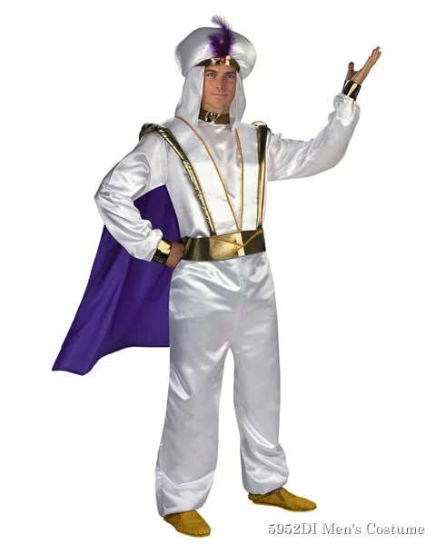 Open sesame to an Arabian adventure when you don this Disney Prestige Aladdin costume for men. You’ll feel and look like a Middle Eastern prince in this one size fits all outfit that is perfect for theme parties, Renaissance Faires, or Halloween parties. You’ll look regal and classy in your white jumpsuit with a flashy vest for accents. A royal turban with a drape complete the costume with class and elegance. But there are also other accessories to accent you look, you can purchase genie shoes with pointed toes that are sure to make you the life of the party. If that’s not enough, you can even accessorize your costume with a realistic looking genie lamp. Everyone will be dying to see what comes out when you rub it. Get on your magic carpet, and fly down to Wholesale Costume Club and see what their “genies” have in store for you.