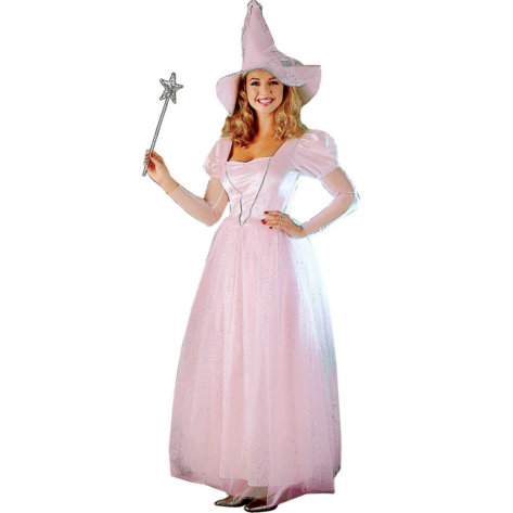 Witches can be just as good as they can be bad. This good witch spreads cures, not curses and casts smiles, not spells. The Good Witch costume includes: full length light pink dress with silver sparkles, silver trim, and sheer sleeves, and matching witches hat.