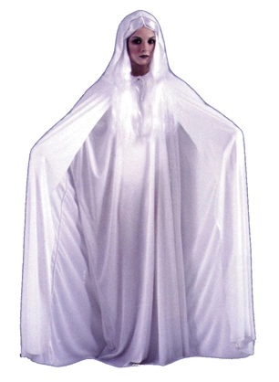 This beautiful little ghost includes nylon robe, nylon cape, gloves, and wig. All white.