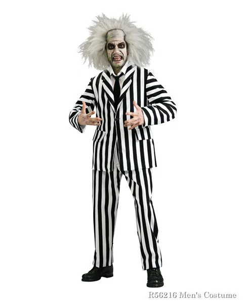 “Beetlejuice, Beetlejuice, Beetlejuice.” Beetlejuice is a classic character from a classic film. This cool getup is a well-deserved nod to the obnoxious bio-exorcist. This Beetlejuice ensemble includes a dickie with attached tie, black and white striped suit jacket and pants. This costume is a great option for those persons who were fortunate enough to see Beetlejuice the first tiem around or who became fans much later of this cult classic. You will find the best priced costumes online here at CostumeSupercenter.com. Besides our low everyday prices, we regularly place high quality costumes on clearance. If you are happy with your selection, you may order safely and securely online. If not, please continue your search. We have thousands of costumes of all types and in all price ranges. We are confident that you will love our selections and low prices. We work hard to service you in a way that ensures your satisfaction.
