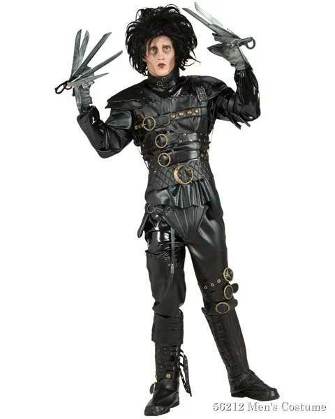With the popularity of the movie now comes the costume of Edward Scissorhands. If you loved the movie then you can bring this popular character from the big screen to your home. From the modern day fairytale that tells the story of a man created by an inventor, who died before finishing him and left him with scissors where he should have hands, comes Edward Scissorhands. If you are a big fan of the movie Edward Scissorhands or even a fan of any of Johnny Depp’s movies then this is a must have for you. The realism of the costume is one of a kind and chillingly accurate to the one in the movie. Re-live this modern day on-screen fairytale hero’s trials &tribulations in this officially licensed Edward Scissorhands character costume. Full outfit includes a leather jacket, pants, boot tops, scissor gloves, belt, wig & makeup kit the whole shebang.