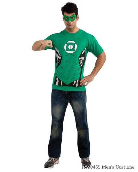 Be part of the Guardians of the Universe in the Green Lantern Men’s Costume Kit. Hal Jordan is a test pilot for the Ferris Aircraft Company and later becomes the first earthman ever inducted into the Green Lantern Corps. This Green Lantern Halloween costume is made for the man who wants to wear some sort of costume, but doesn’t want to get all decked out. The Green Lantern Costume Kit is the perfect selection for this type of man, and consists of a green shirt with a white green lantern symbol screen printed on the chest. On the torso of the shirt are screen printed black muscle lines. The sides of the shirt are black with white accents. In order to conceal your identity, we include a bright green eye mask. As a final touch, we include the coveted Green Lantern ring. Check out our accessories section to add a little pizzazz to this ensemble.