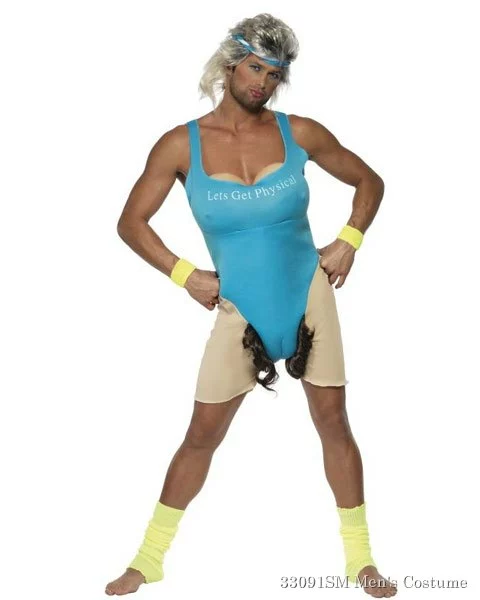 In the early 80’s aerobics became the biggest rage and all the celebrities were joining the fitness craze. One singer even made a video about getting physical. This Men’s Lets Get Physical Costume is based on that song and singer but with some major differences. For instance, this costume includes a workout body suit with an overly hairy bikini line, a very ample padded chest and a camel toe. We don’t remember seeing any of these things in the video. The costume also comes with a matching headband which was very stylish in the early 80’s. This Halloween, take a risk and wear a daring and humorous men’s costume like this one. Its raunchy and hilarious, but for mature audiences only.