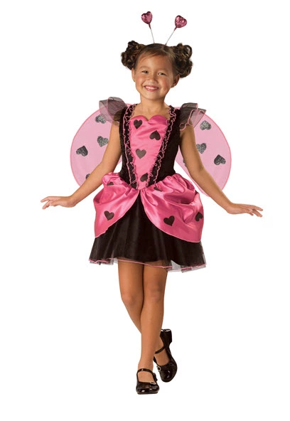 Costume includes: Adorable black and pink dress accented with hearts, pink wings, and heart attenna headpiece.