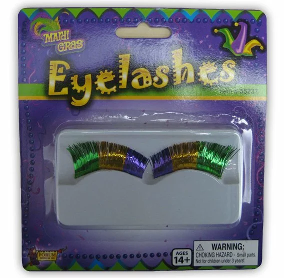 Party this Mardi Gras in unique style! Includes one pair of tri-colored eyelashes in Green, Yellow and Purple, perfect for almost any look.