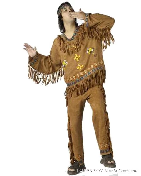 Here is a costume idea that you can wear to several parties and functions throughout the year, the Men’s Plus Native American Male Costume. You’ll look great while deciding if you’d rather huff on the peace pipe or go on the warpath in this handsome warrior outfit that includes a traditional Native American top and bottom. This Native American outfit is made for plus size warriors, and will fit men in the 5’9″ to 6’3″ height range and up to 300 pounds in weight. You can wear this versatile outfit at Thanksgiving, costume balls, theme parties, and Halloween. Add to the traditional look and feel of the Native American costume with a Male Indian Wig for Adults to complete an outfit you’re sure to love. Take a date to the party when you get your girl a Native American Costume for ladies from Wholesale Costume Club. * Sandals not included.