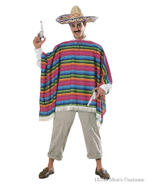 This is the perfect outfit for that south of the border fiesta. The Mexican Serape Costume for Adults is a versatile outfit that you’ll love. You can be Pancho Villa or a just a friendly local when you don this costume that consists of a large sombrero and a colorful serape. Grab a cold Corona and some tacos and get ready for some rollicking good times when you invade your next costume party, Halloween bash, or Mexican fiesta wearing this serape costume for men. The serape outfit is one size fits all and will accommodate most men comfortably. Add to the renegade look of this costume with a comical Jumbo Fake Cigar and a 60 inch Deluxe Bullet Vest that lets everyone know you’re an outlaw to contend with. Check out all of the great costume choices from Wholesale Costume Club, where they have the lowest prices on the internet.