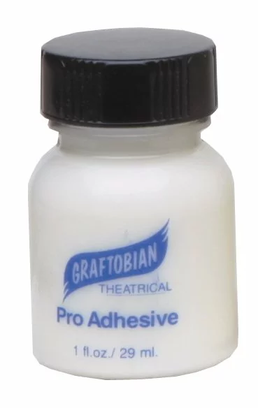When you need something to stay on, virtually no matter what, use Pro Adhesive! To use: Coat the appliance and the skin area with the Pro-Adhesive. Allow to dry clear. Press the two coated surfaces together and they are stuck – don’t bother trying to reposition – it is not possible. Pro-Adhesive is a serious professional prosthetic adhesive not to be used by those who are unfamiliar with its properties. Please be sure that those who use this formula are properly instructed in its use and removal.