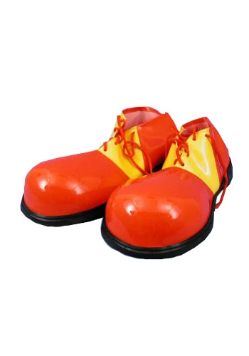 Pair of Red and Yellow Clown Shoes Complete your birthday, circus or parade clown costume with these funny shoes! The over-sized shoes are red with yellow in the middle and are secured in place with red shoe strings. They have black rubber bottoms with grips for easy walking. The shoes measure 12″ from heel to toe and 5 1/2″ wide. Be sure to check out all of our clown accessories like noses, makeup, wigs and more for a zany look!