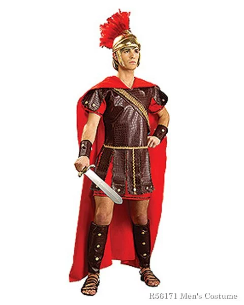 The Roman Warrior Adult Costume exemplifies honor, power and courage. Paying homage to the one of the world’s most powerful and storied empires, this ensemble is appropriate only for the man’s man. The Warrior Costume for Adults includes a headpiece, leg guards, cuffs and tunic with attached cape. Instantly transform into a warrior and watch the ladies swoon. Sorry, but muscles not included. Those you’ll have to obtain on your own!You will find the best priced costumes online here at CostumeSupercenter.com. Besides our low everyday prices, we regularly place high quality costumes on clearance. If you are happy with your selection, you may order safely and securely online. If not, please continue your search. We have thousands of costumes of all types and in all price ranges. We are confident that you will love our selections and low prices. We work hard to service you in a way that ensures your satisfaction.