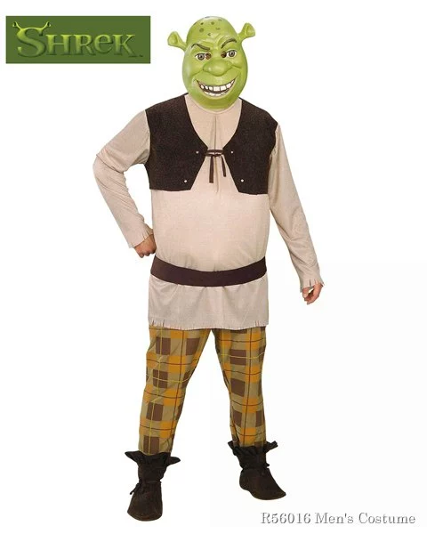 Shrek is the loveable and dopey star of the popular Shrek series. This Deluxe Shrek costume features a plastic Shrek mask, a shirt with attached vest and padding. The costume also comes with brown and orange plaid pants with attached boot tops and waist sash. The Adult Deluxe Shrek getup is a great choice for individuals who themselves love Shrek, or who have children who would get a kick out of seeing mom or dad, wearing this hilarious Shrek ensemble. If you are interested in purchasing this costume, proceed to check out but not before taking a look at the accessories we may have set aside for this particular costume. If for some reason, this isn’t what you’re looking for, continue to peruse our website. We have a huge collection of costumes of all types and in all price ranges. We are confident that you will find what you need. Whether you or your child requires a getup for Halloween or for dress up, CostumeSupercenter.com is the place to find it!