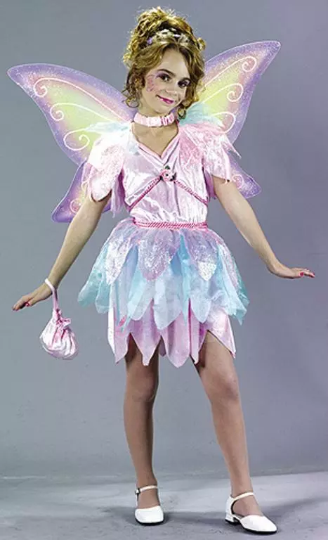 Luscious Pixie! Costume includes: Features a velvet dress with attached cord waist tie petal edge sparkle apron sparkle wings and velvet bag. Available sizes: