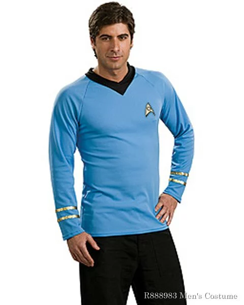 Our Star Trek Classic Deluxe Blue Shirt just may be the ideal Halloween costume for fans of Spock and Bones. This ultra cool shirt would make the top half of the ideal getup. Simple and very authentic looking, the Star Trek Classic Adult Blue Shirt is a great choice for individuals looking for a no-fuss, low maintenance getup. A pair of black slacks and shoes is all that is needed to satisfactorily complete this look. Consider adding the Star Trek TNG Taser (sold separately) if you want to take things to the next level. Find what you need? If you love this costume, feel free to check out but not until you had a look at the accessories we have chosen especially for this costume. Have a question or comment? Give us a call at our toll free number. At Costumesupercenter.com, we strive to provide you, our customer with top-of-the-line, high quality costumes that you can afford. We are pretty confident in our ability to deliver. You will find some of the best costumes in the world at this website. * This is an officially licensed costume.