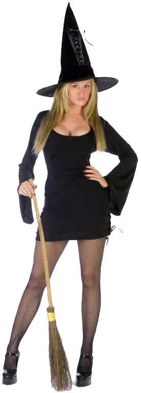 Includes: Black bell sleeved mini dress with lace up side and hat with lace up detailing.