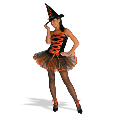 This BuyCostumes.com favorite now comes in a lovely shade of orange! Costume includes hat, bustier, tutu, bloomers, and shoe ribbons. Also look for Witchy La Bouf in Pink or Blue.