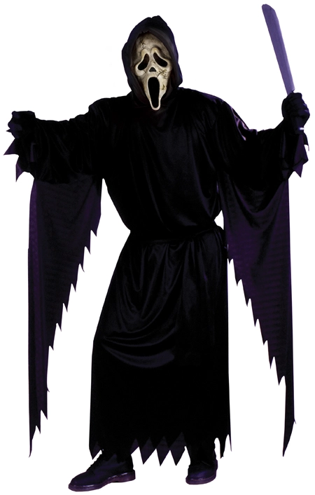 Costume includes: hooded robe, belt, and Ghost Face mask